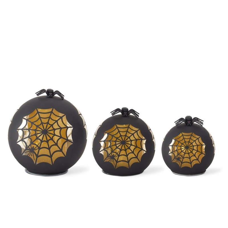 LED Lighted Black Pumpkin w/ Halloween Scene, 7.5