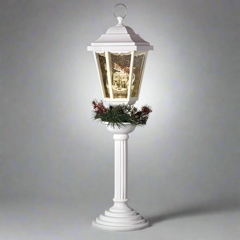 LED Swirl Lamp Post W/ Wreath Snow Globe, 27.5