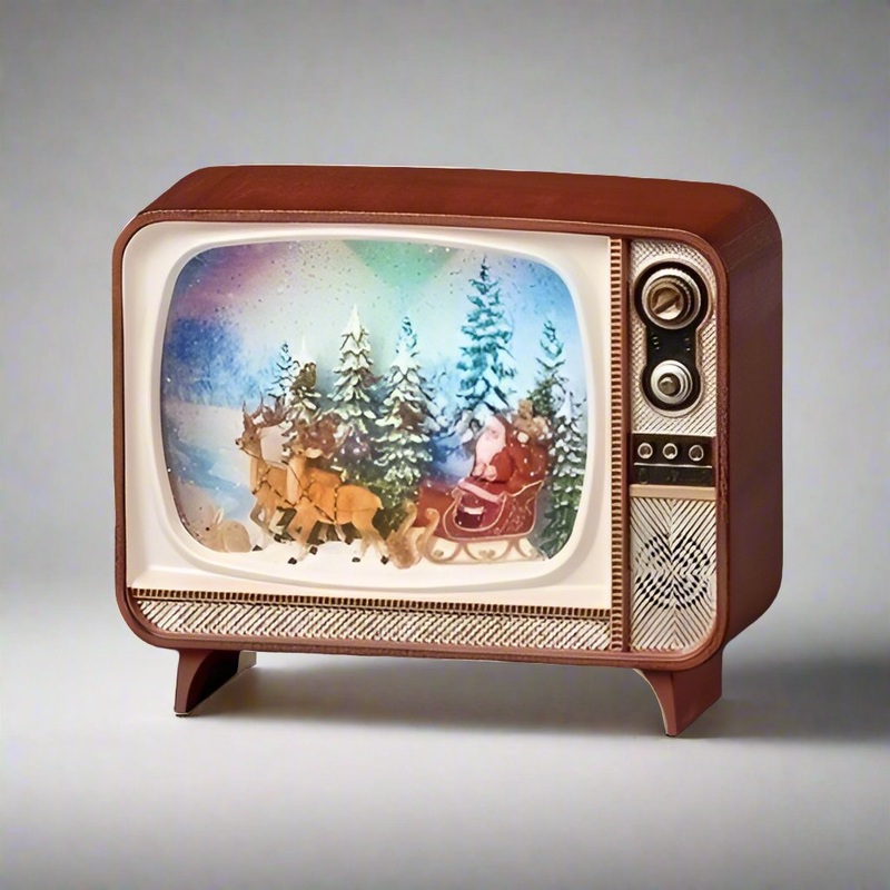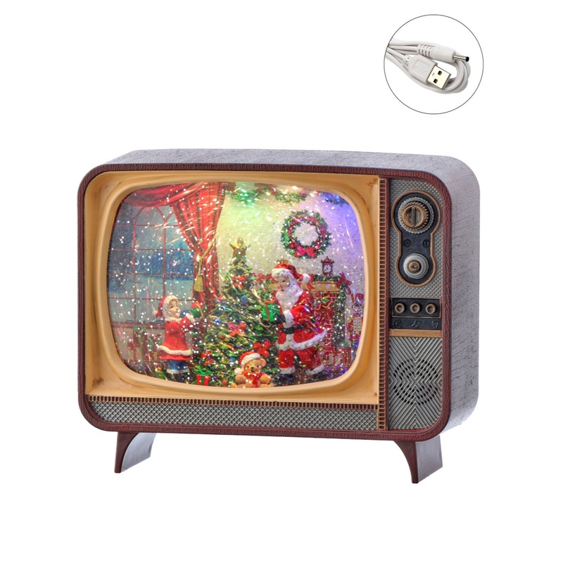Retro TV Water Globe /W Santa Christmas Scene, 8.5