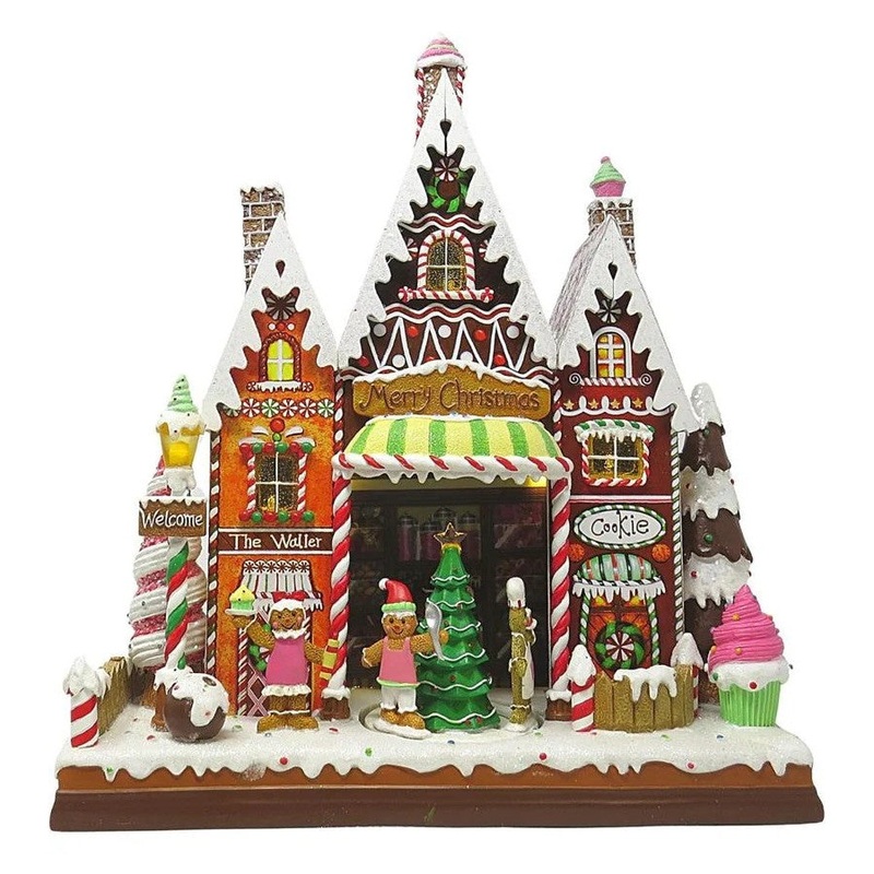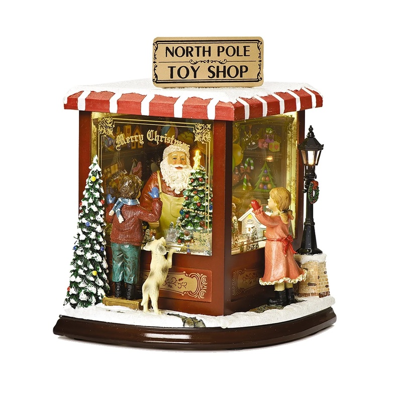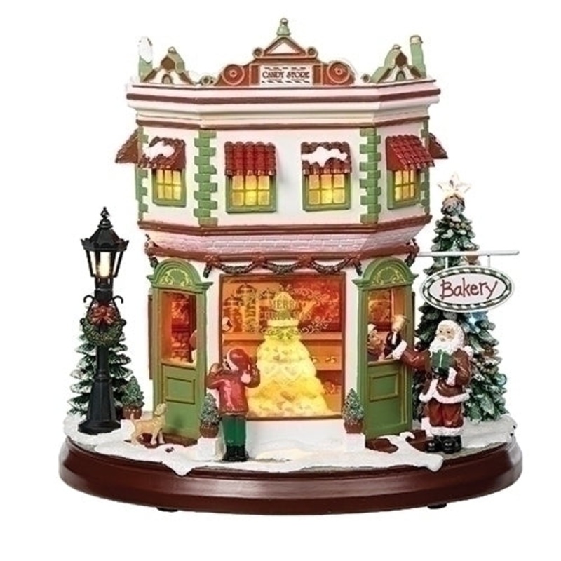 Musical LED Lighted Candy Store W/ Rotating Figures, 15.5