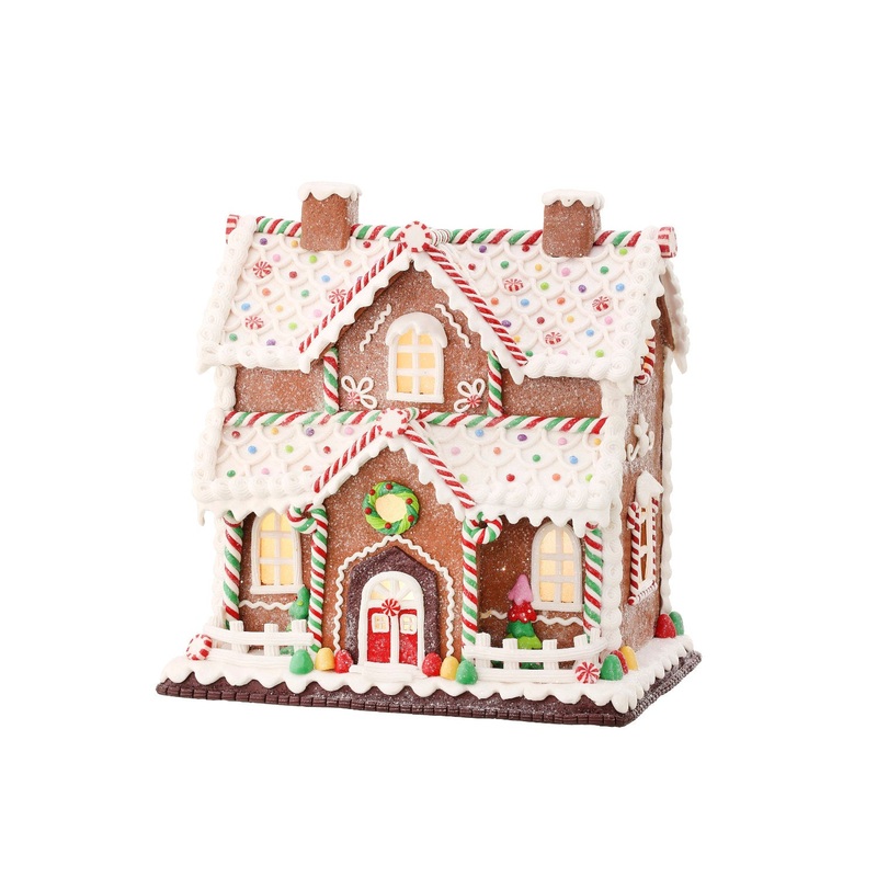 Illuminate your holiday dcor with this charming 12" LED Claydough Candy House. Battery operated with a convenient timer, it offers hassle-free glowing ambiance to brighten any room. The intricate claydough design adds a festive touch, making it a delightfu