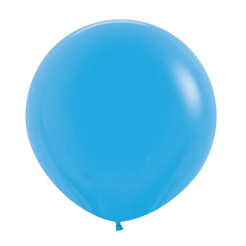 This product is a 2-pack of 36" round solid color Sempertex Deluxe Blue latex balloons, ideal for creating balloon arches, columns, clusters, and other decorations. You can coordinate these latex balloons with themed foil Mylar balloons for a complete ball
