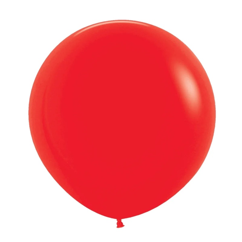 This product is a 2-pack of 36" round solid color Sempertex Deluxe Red latex balloons, ideal for creating balloon arches, columns, clusters, and other decorations. You can coordinate these latex balloons with themed foil Mylar balloons for a complete ballo