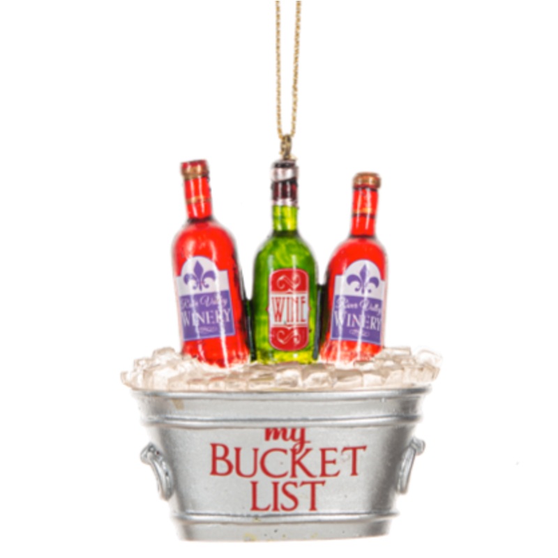 A charming bucket ornament filled with miniature bottle of wine, bringing a festive and indulgent touch to your Christmas tree!