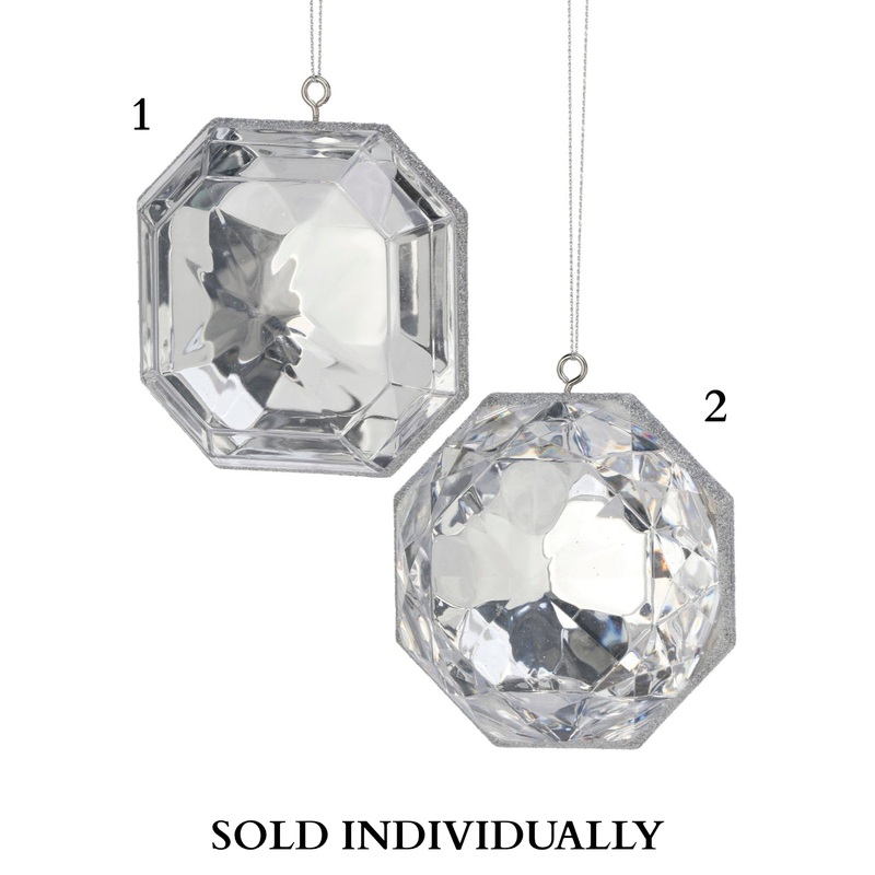 Add sparkling elegance to your holiday decor with this 4" Acrylic Precious Gem Ornament. Crafted with clear iridescent acrylic, it captures and reflects light beautifully, creating a dazzling display. Available in two unique styles, each sold individually,