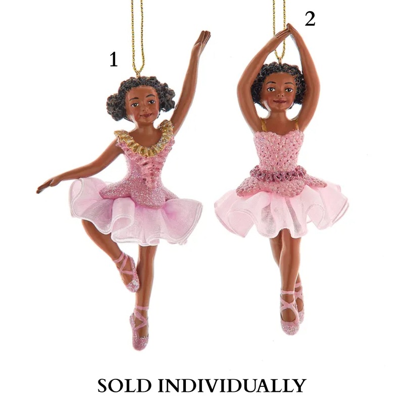 Kurt Adler’s African American Pink Ballet Ornaments celebrate the beauty and grace of ballet with a touch of diversity. These enchanting ornaments feature ballet dancers in African American heritage dressed in pink tutus, making them a delightful and meaningful addition to your Christmas tree or any festive display. Crafted with meticulous attention to detail, each African American Pink Ballet Ornament showcases a miniature ballet dancer figure with rich skin tones, dressed in a delicate pink tutu and ballet slippers, complete with intricate facial features and a graceful pose. These ballerinas exude a sense of elegance and artistry, capturing the essence of the ballet. Whether you have a passion for dance, a love for the arts, or simply appreciate meaningful and artistic ornaments, these African American Pink Ballet Ornaments are the perfect choice. They bring a touch of artistic beauty and cultural diversity to your celebrations, making them a heartfelt addition to your collection of ornaments and a source of inspiration for family and friends. Celebrate the magic of the holiday season and the beauty of diversity with our African American Pink Ballet Ornaments. Let them remind you of the importance of inclusivity and the artistry of dance, and make them a special part of your holiday traditions.