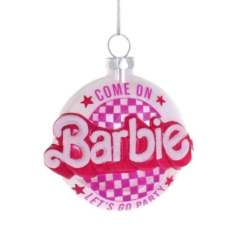 Celebrate special moments with this charming 2.5" Barbie Party Ornament made from high-quality glass. Its delicate design adds a touch of elegance to any holiday dcor, making it a perfect keepsake or gift. Lightweight yet durable, it easily hangs on trees