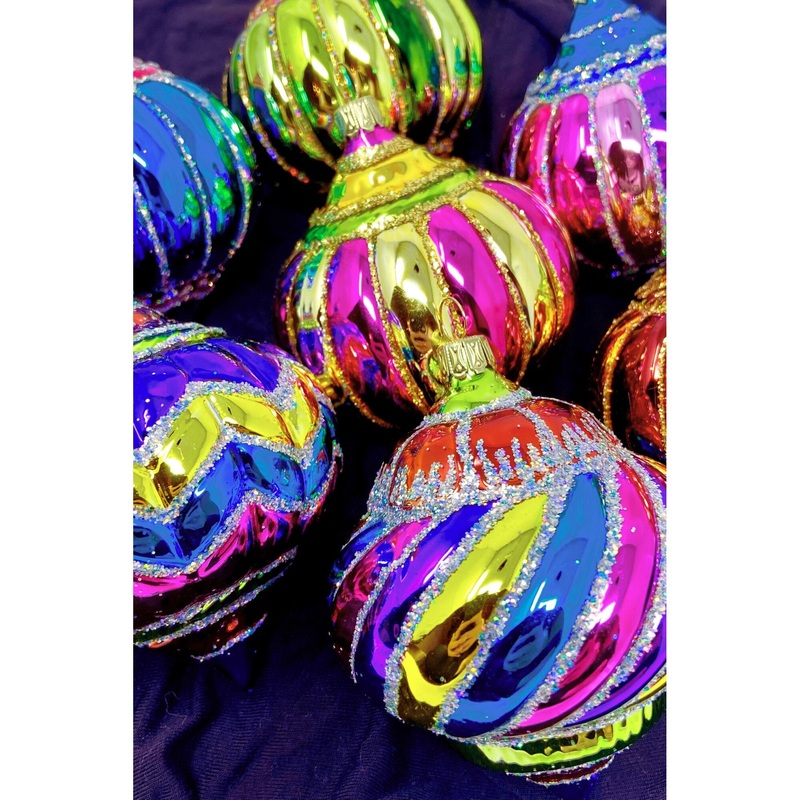 Each ornament is hand-blown in these historic molds, meticulously hand-painted, and accented with rich color palettes and glitters that reflect timeless beauty. With vivid, contemporary hues that catch the light and draw the eye, these ornaments seamlessly