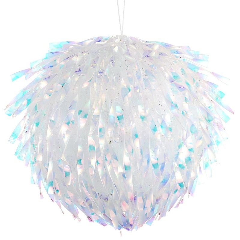 Add a shimmering touch to your holiday dcor with this 5" Beaded Tinsel Ball Ornament. Crafted from durable plastic and lightweight Styrofoam, it features a sparkling iridescent glitter finish that catches the light beautifully. Perfect for enhancing your C