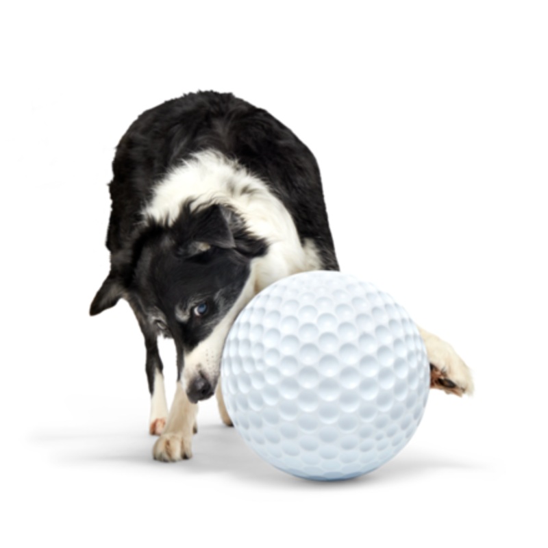 Your FOUR!-legged friend will love this EXTRA-LARGE toy! This oversized rubber ball has a wacky wobble for endless interactive fetching and pawing. You and your dog can kick, throw, tumble, and toss this ball all over the green (or wherever your pup prefer