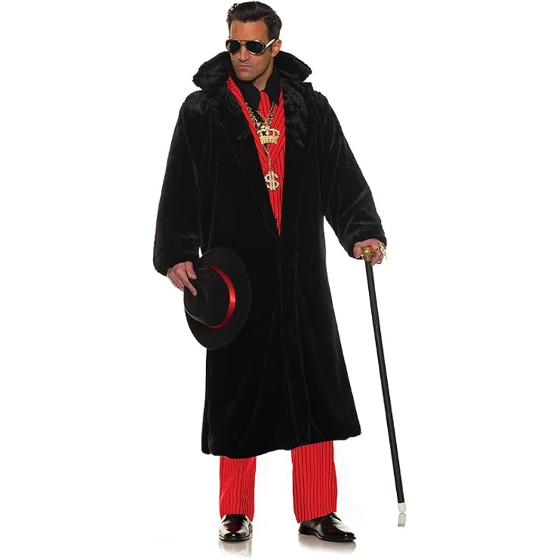 Black plush faux fur full length coat. Coat only, accessories not included.