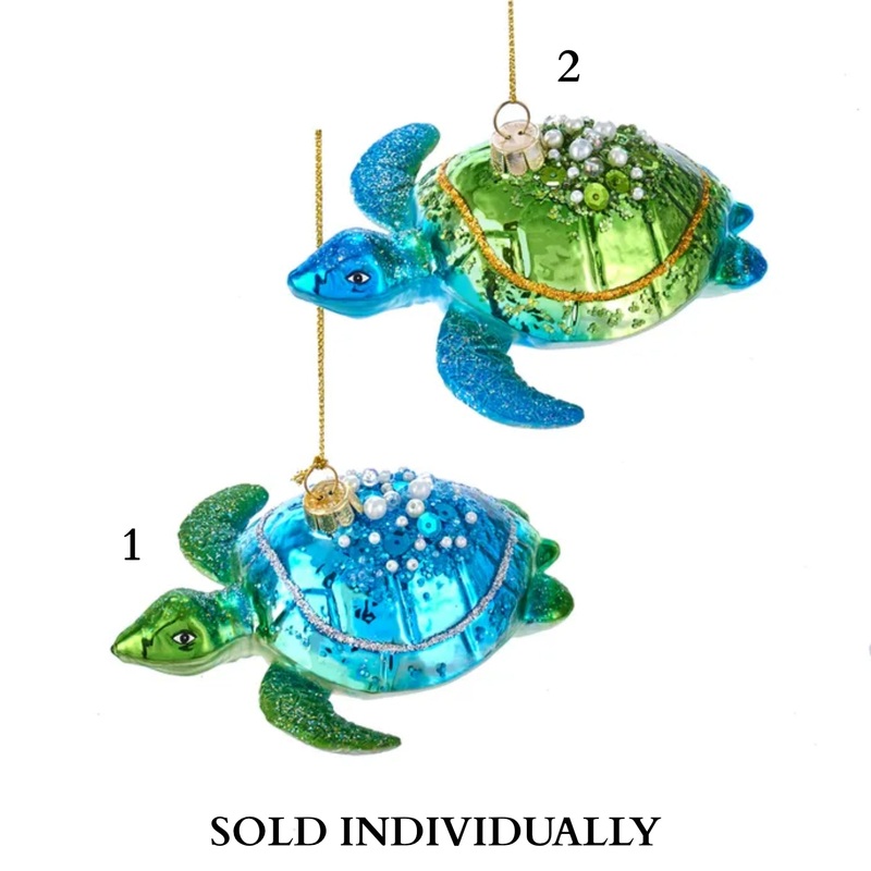 Blue and Green Sea Turtle Glass Ornaments (2 Styles Sold individually)