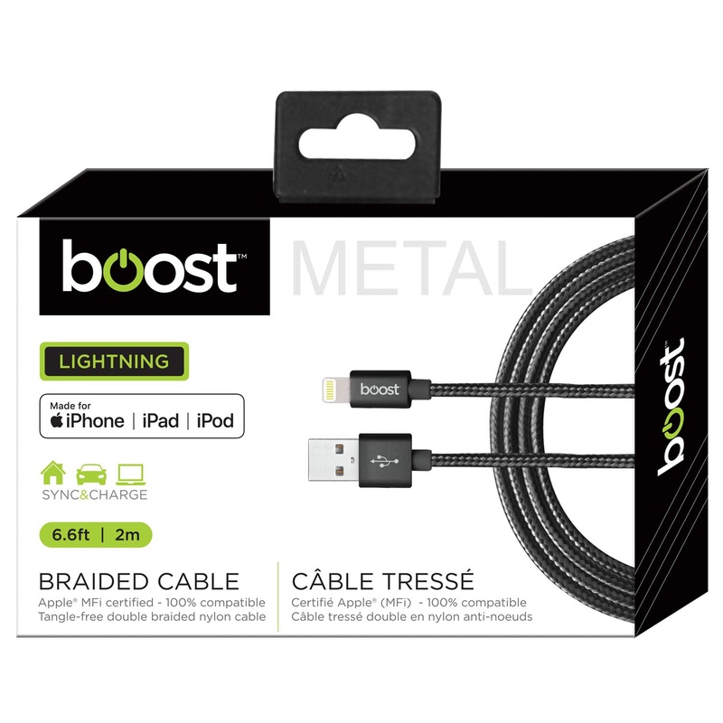 Boost Lightning Black Braided Cable – Metal 6.6ft (2m)