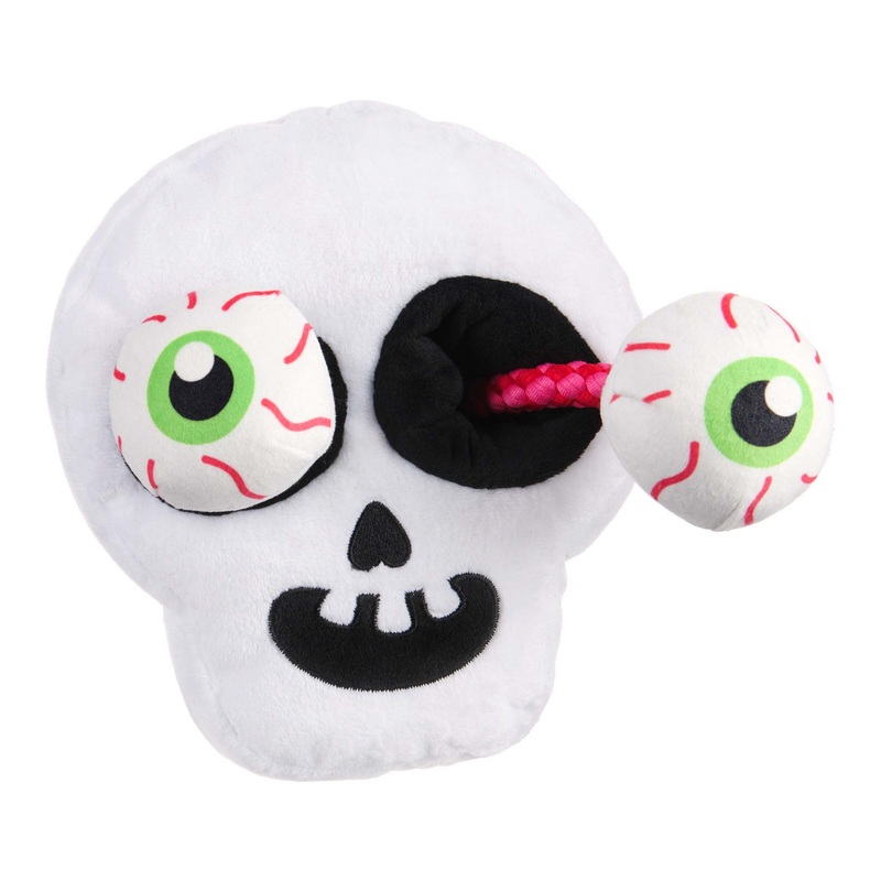 Always check under your bed for the Bugeye Man! And the couch. He rolls under there a lot too. Small Size: 6.25L x 8W x 9HFeatures: 3 Squeakers Crazy Crinkle Pull-Through T-Shirt Rope Recommended For: Tug, Thrashers, Squeaker Seekers