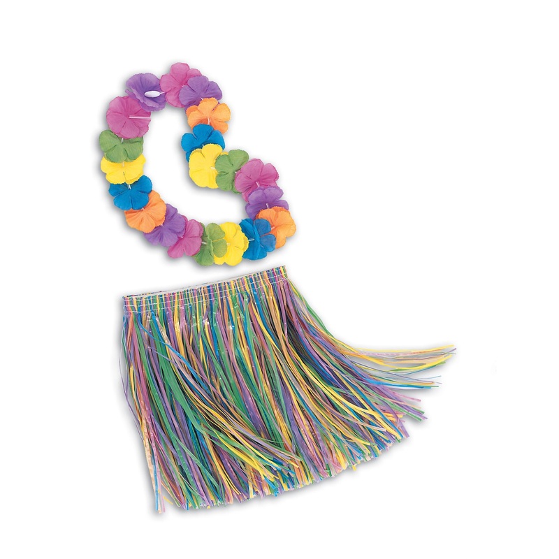 Child Skirt and Lei Set Stretch Waist Skirt Size 10W x 13L in Lei 30in