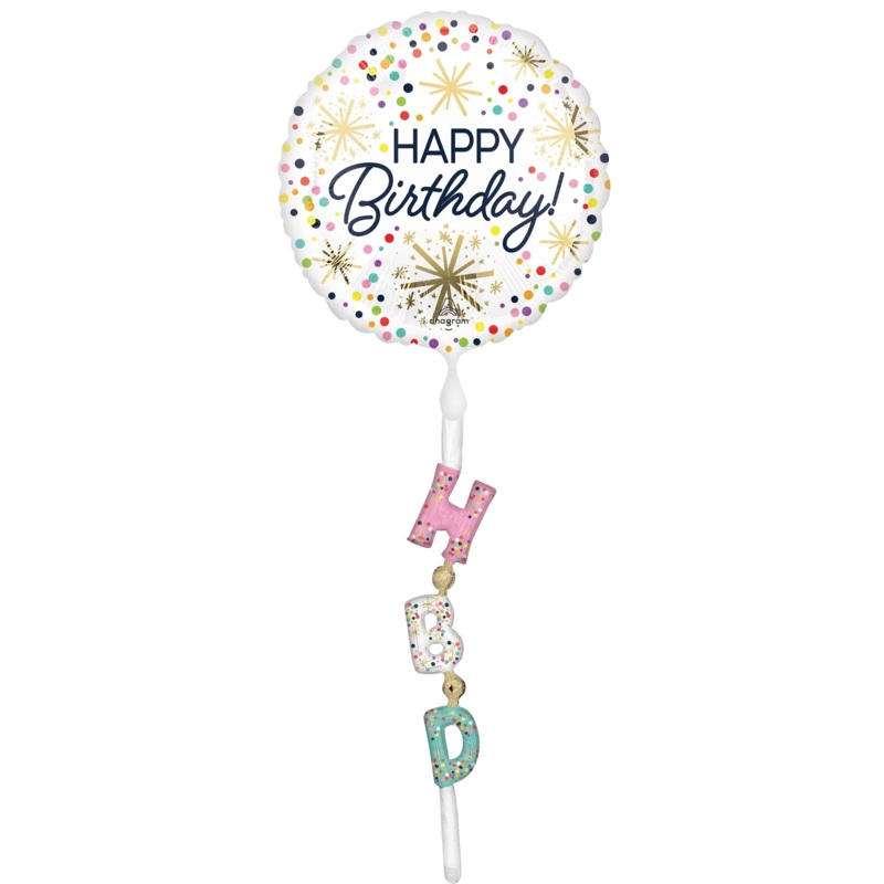 Make any celebration shine with the Confetti Sprinkle "Happy Birthday" Airwalker Balloon! This festive foil balloon features a weighted tail with a fun "HBD" design to keep it in place. It's a must-have decoration or a standout addition to any bouquet.Ball