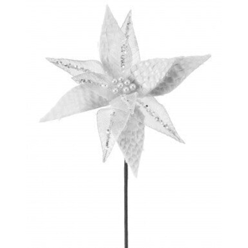 Winter white elegance at it's finest! This 24" white fabric poinsettia pick is perfect for any holiday decor!
