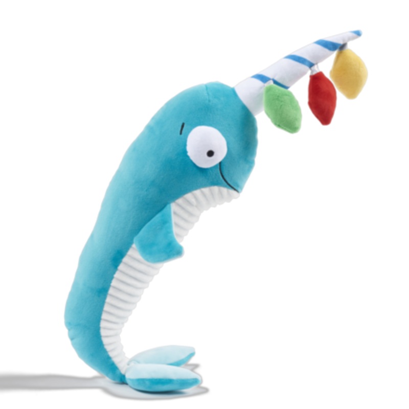 This Narwhal dog toy is the holiday unicorn your dog always wanted but didn't believe existed. This extra large whale of a toy is here to help decorate your pup's playtime with a deep squeaker and whip-n-flip fins. Need some artificial snow around the hous