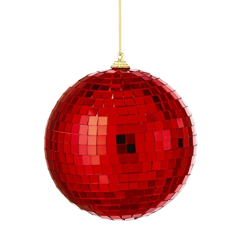 Add some fun and sparkle to your holiday decorations with our Disco Mirror Ball Ornament! This 5" red ornament will add a touch of disco party nostalgia to any tree or decor. Shine on and get groovy this holiday season!