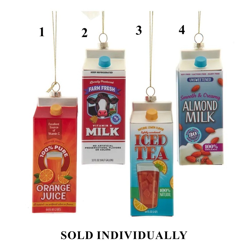 Drink Carton Ornaments, 5.25 (4 styles – sold individually)