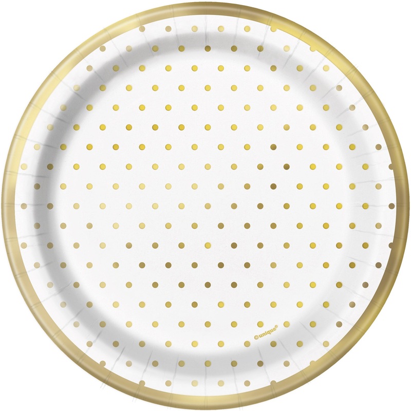 Elegant Gold Dots 8 Round Paper Plates 7in