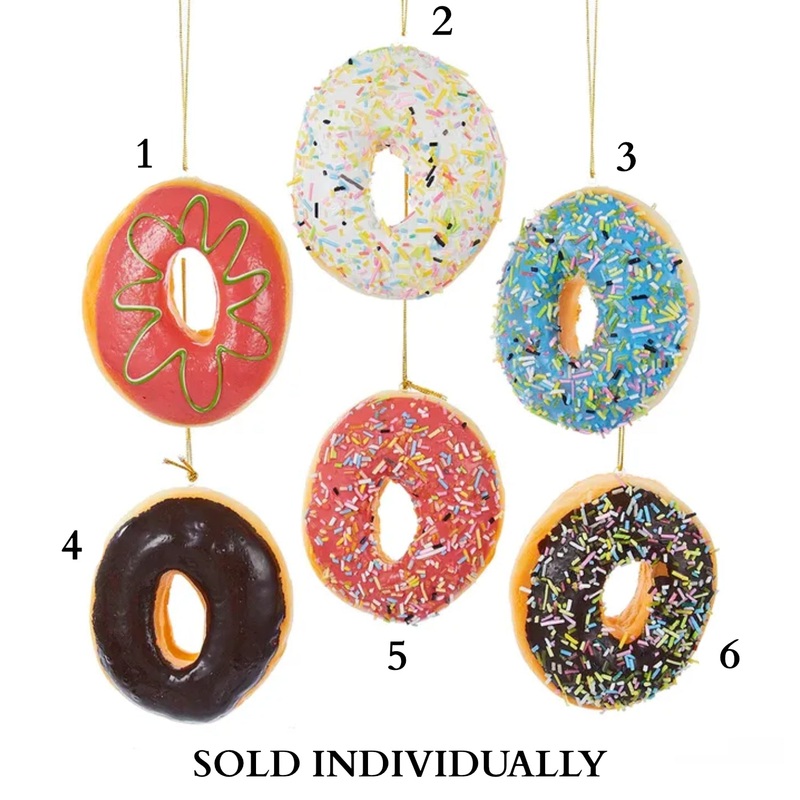 Add a sweet touch to any holiday dcor with this assortment of six donut ornaments from Kurt Adler! Each foam donut is realistically designed and detailed. This assortment includes a pink frosted donut with green icing, a chocolate frosted donut, a white fr