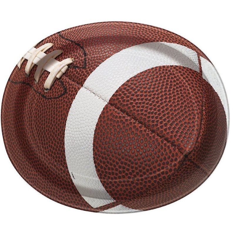Score a touchdown with these oval paper plates! Perfect for your football party, these 12 inch plates will hold all your game day snacks. Includes 8 plates for a winning celebration.