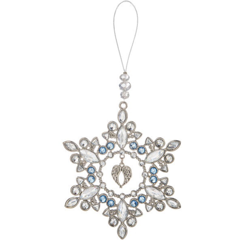 A beautiful keepsake ornament, the Forever In My Heart Snowflake is the perfect way to remember those are no longer with us, but will live forever in our hearts. Beautifully detailed with white and blue faceted crystals and a beautiful angel wings charm da