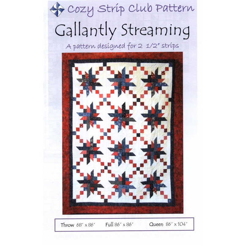 - Pattern designed by Cozy Quilt Designs.- A Strip Club Pattern using 2 1/2" strips, border and backing fabrics.- Includesfabric requirements and directions forthe followingquilt sizes:68" x 86" Throw86" x 86" Full86" x 104" Queen- Cozy Quilts patternsincl