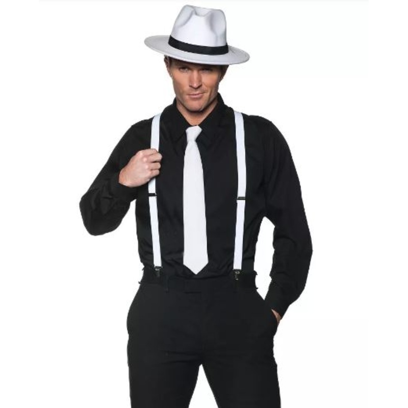 Includes: Felt Fedora Hat, Suspenders, Tie.