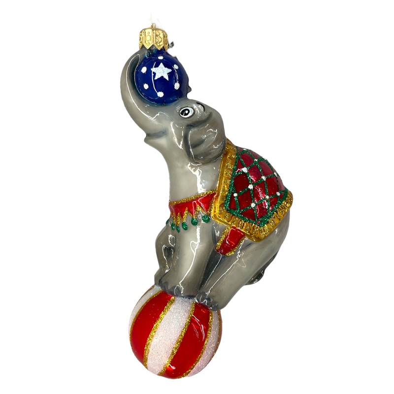 Glass Elephant on Ball Ornament, 5.5 (Gray)