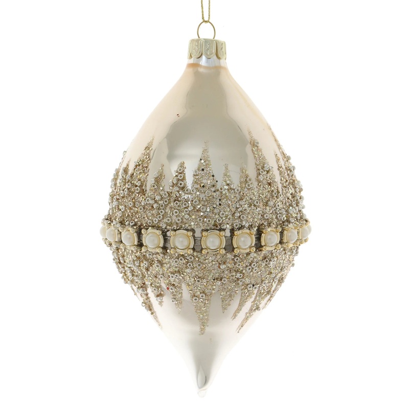 Glitter Pearl Band Finial Ornament, 6 (Ivory & Gold)