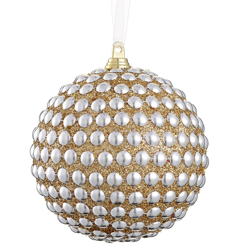 Add a touch of elegance to your Christmas tree with this dazzling 4" gold glittered ball ornament. Made from durable plastic, this eye-catching decoration catches and reflects light beautifully, creating a warm, festive glow throughout your holiday space.