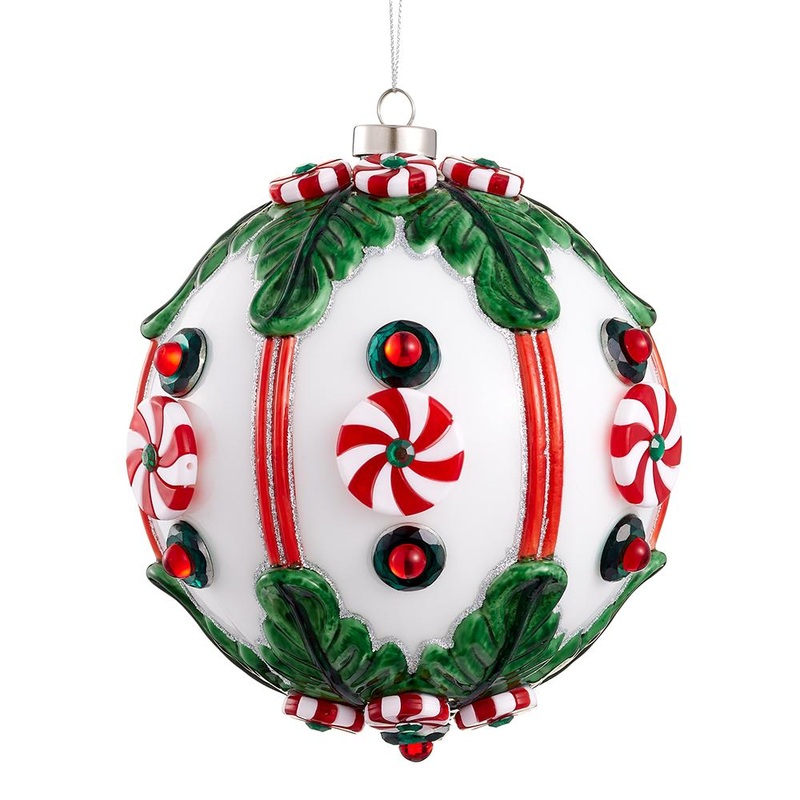 Glittered Candy Glass Ball Ornament, 6 (Red & Green)