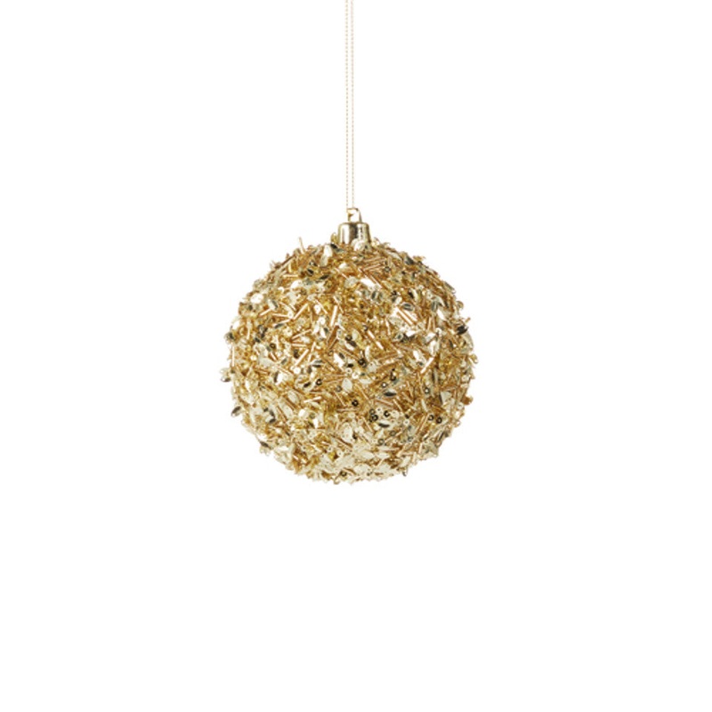 Add a touch of sparkle to your holiday dcor with this 4-inch Gold Sequin Ball Ornament. Crafted from durable plastic, it offers a lightweight yet festive shimmer that catches the light beautifully. Perfect for enhancing your Christmas tree or seasonal disp