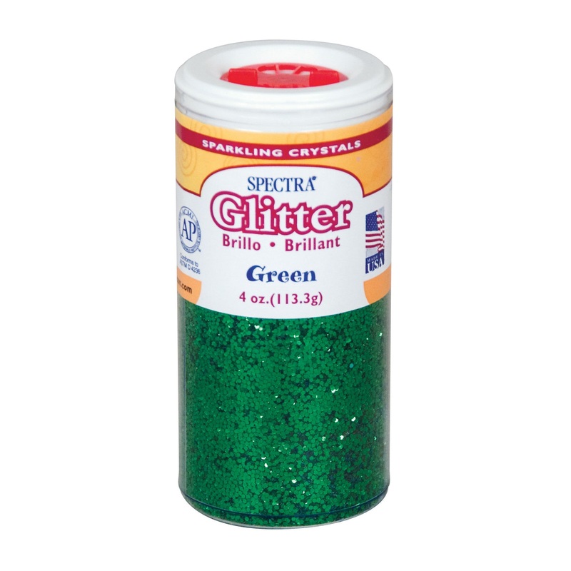 The 4 oz. Green Glitter comes in counts of 1 that are each 4" in length and 2" wide. The Green Glitter is perfect for decorations, crafts, and art projects. This Glitter is made of quality glitter.