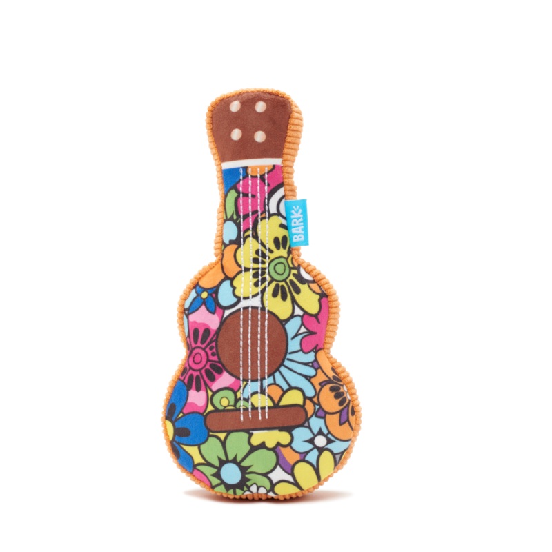 This guitar dog toy is the grooviest thing to play at Woofstock! Made with crazy crinkle, a squeaker, and all recycled fluff, Guitar Licks is great for dogs who want to learn to play achewstic guitar. Small Size: 3.25"L x 2.25"D x 6.5"H Features: 1x Small