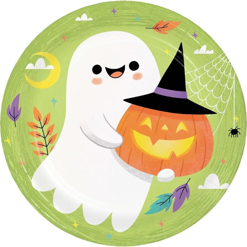 Get ready to host the spookiest Halloween party with our Halloween Faboolous Lunch Paper Plates! The 9" plates feature playful ghost and jack o lantern designs, adding a fun touch to your table setting. With 8 plates in each pack, you'll have plenty to ser