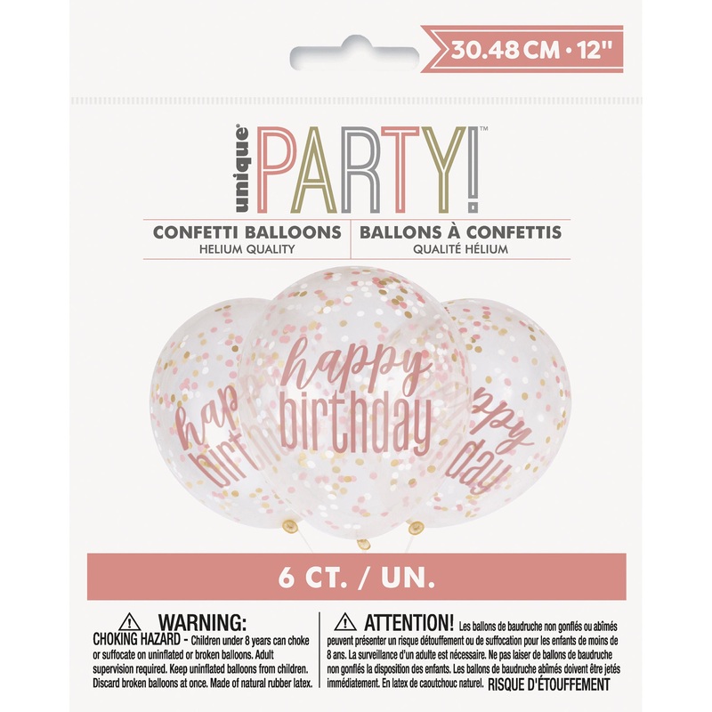 Happy Birthday Pink 6 Printed Clear Latex Confetti Balloons 12in