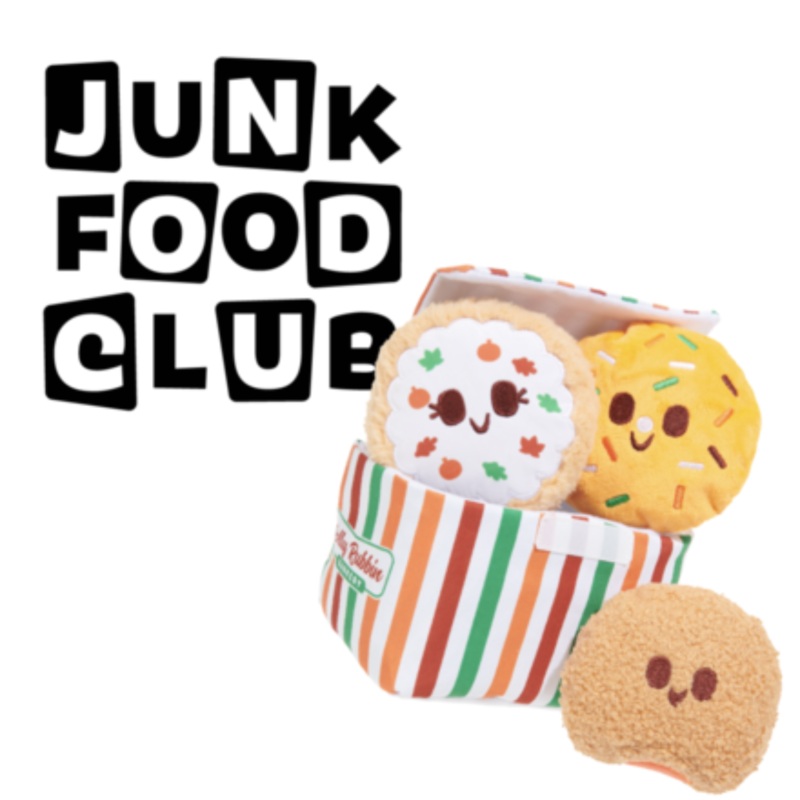 Our Junk Food Club gives dogs a taste of your childhood favorites. But this time, theyre packed with squeakers and fluff instead of sugar. Collect all of these deluxe plush toys for the ultimate snack pack! Plus, save $2 a month by signing up for a monthly