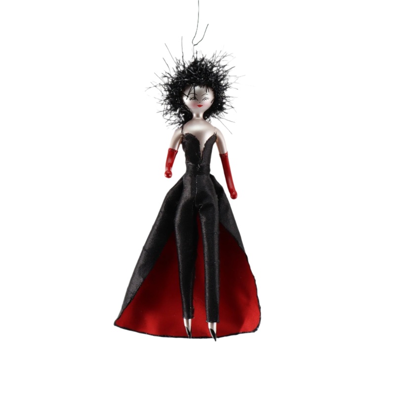Soffieria De Carlinis Lady in Black Suit W/ Red Tail Ornament is a unique, mouth-blown masterpiece that brings elegance and festive charm to your holiday dcor. Hand-decorated with exquisite detail, this ornament captures the timeless spirit of Christmas, a