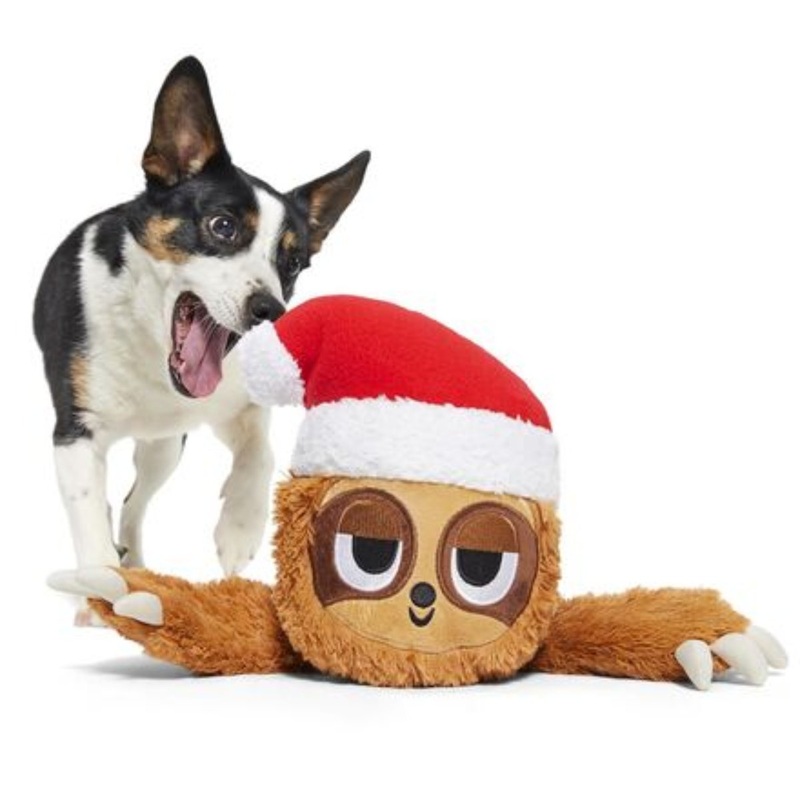 Are you and your pup looking to avoid the holiday rush? This super-sized sloth toy can slow you the way. Just follow the sound of the spiky ball squeaker, and grab hold of those whip n flip limbs, and you and your dog will be making merry in notimeatall!XL