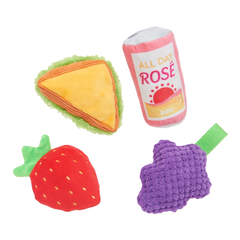 Pack in the fun with everything your dog needs for a picnic in the . Hair-covered blanket not included.Small Size: 2.25D x 5.75W x 7.75H 4x 1.77 small disc (1 in each) Features: Multi-Part Toy (4) 4 Squeakers Crazy Crinkle Soft Plush (all) Dimpled Plush (g