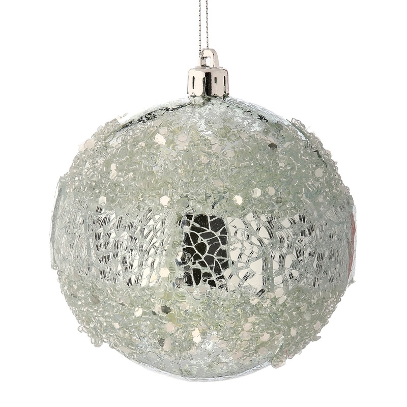 Add a touch of icy elegance to your holiday decor with this set of three 100MM Mercury Glass Ice Mirror Ball Ornaments in a cool iced blue hue. Each ornament showcases a delicate cracked mirror design surrounded by shimmering mercury glass, offering a fros