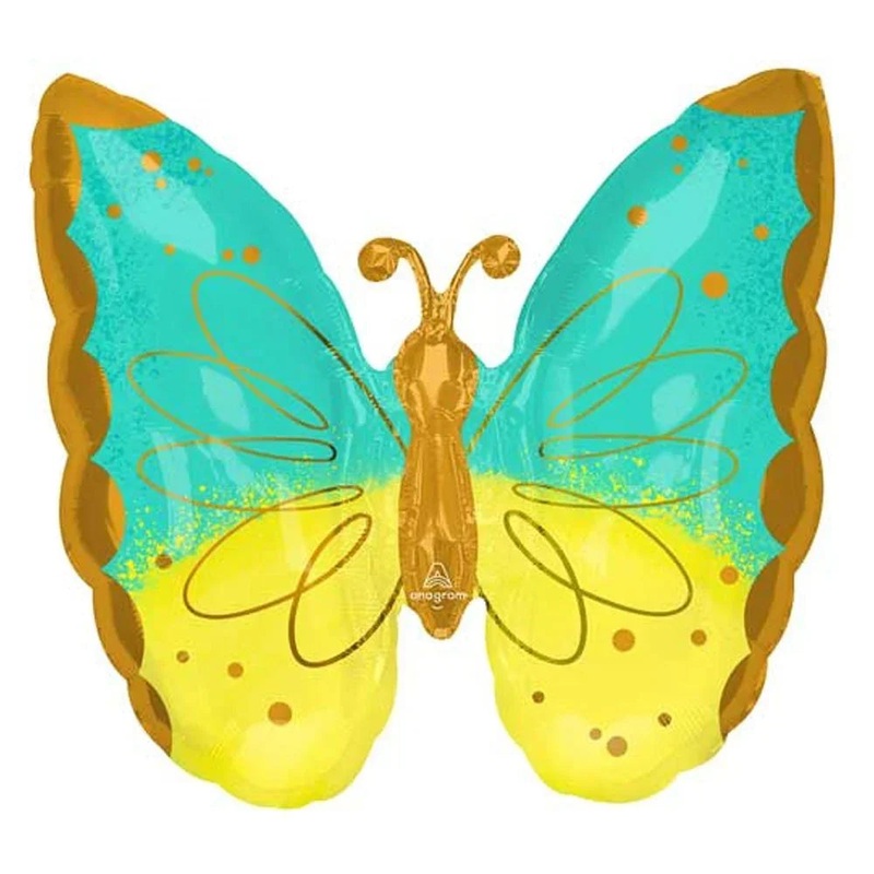 Mint and Yellow Butterfly Supershape Balloon 25in | 1 ct