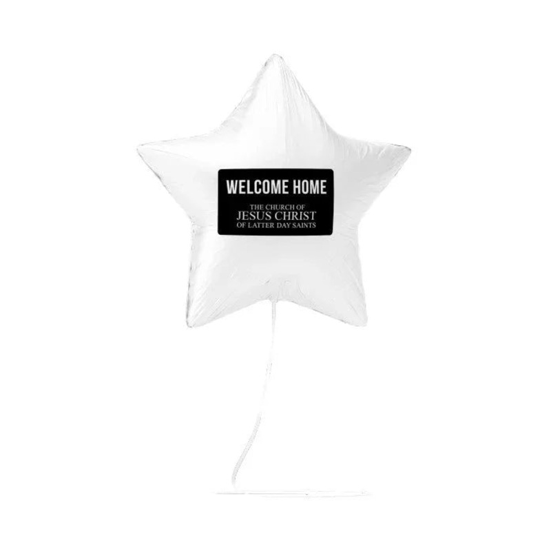 Welcome your Missionary home with balloons. This 17" Star balloon has a graphic that is similar to a Missionary name tag and says, " Welcome Home" along with The Church of Jesus Christ of Latter Day Saints.1 Count17 InchBalloon delivered flat