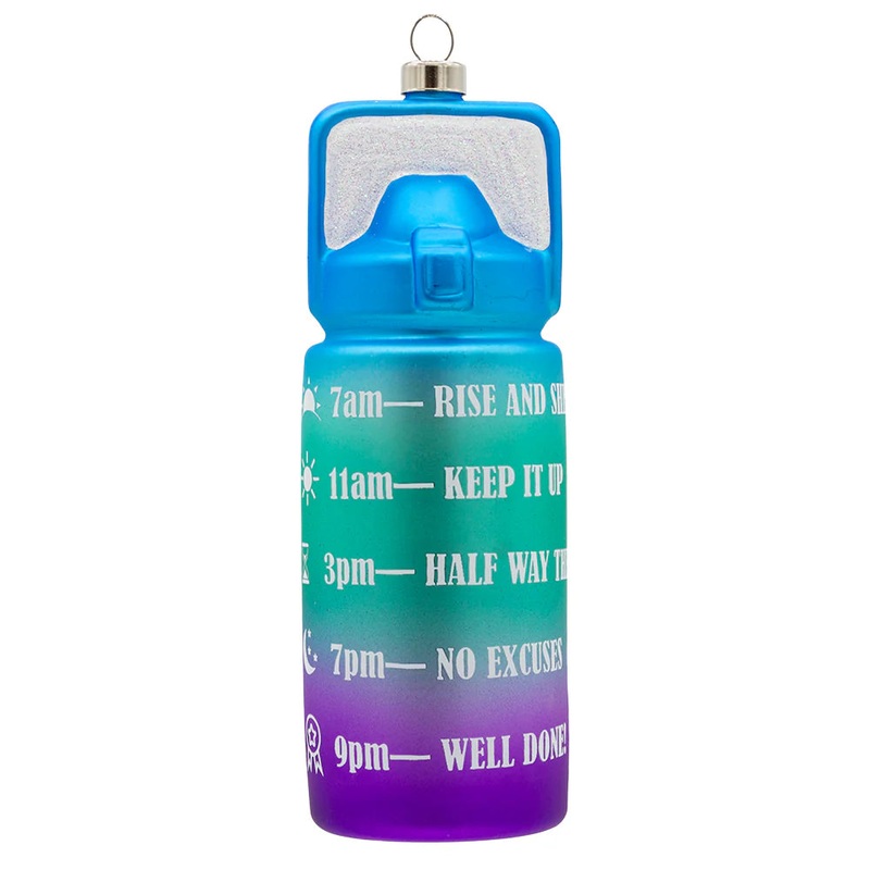 Stay hydrated in style with this fun water bottle ornament! Complete with time stamps, it's a playful reminder to sip and stay refreshed throughout the day. Cheers to a hydrated and jolly holiday season!Dimensions: 2.08 x 2.08 x 5.9 inches