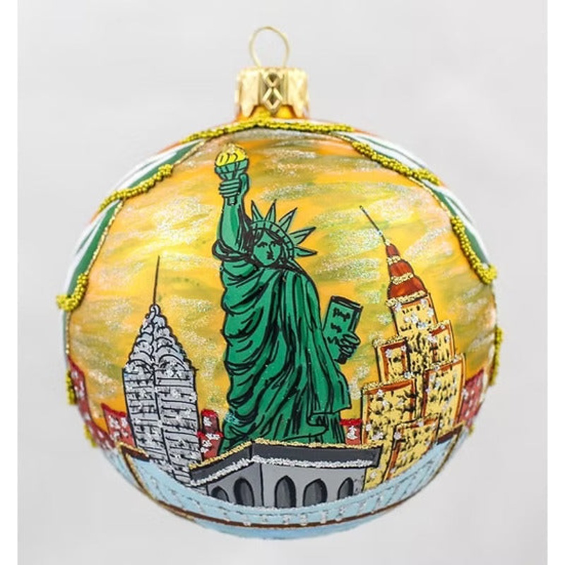 Celebrate the iconic beauty of New York City with the New York Ball Ornament from the High Design collection. Handcrafted in Poland from glass, this 4-inch ornament showcases detailed images of the Statue of Liberty, Chrysler Building, and the city skyline