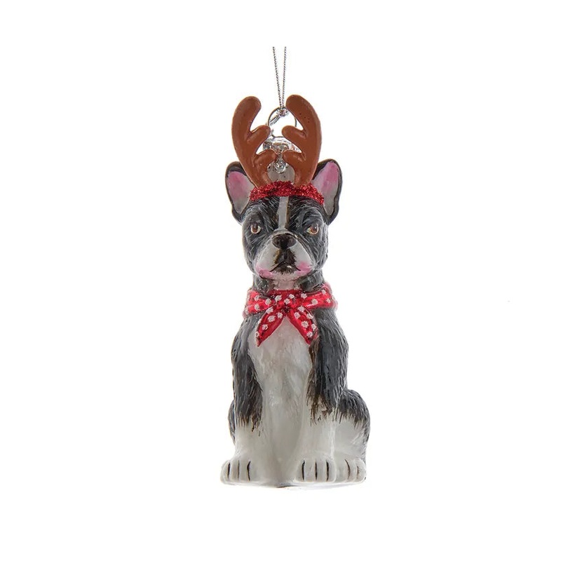 Noble Gems Boston Terrier With Antlers Glass Ornament