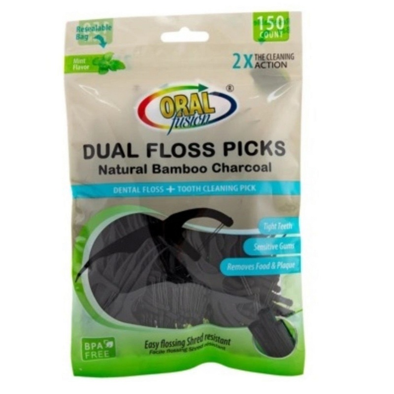 Oral Fusion 150 Natural Bamboo Charcoal Dual Floss Picks